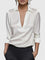 - Efektowny dekolt w kształcie litery V: Gustowny dekolt w kształcie litery V wydłuża szyję, tworząc wyrafinowaną sylwetkę, idealną zarówno w profesjonalnych, jak i towarzyskich okolicznościach.