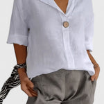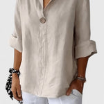 Zachowaj chłód i pewność siebie przez całe lato w tej luźnej bluzce z dekoltem w serek i węzłem. Wykonana z oddychającej mieszanki bawełny i lnu, oferuje idealne połączenie swobodnego komfortu i casualowej elegancji.