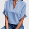 Dodaj świeżego akcentu do swojej garderoby dzięki tej eleganckiej, lekkiej bluzce — idealne połączenie komfortu, koloru i klasycznego stylu. Wykonana z miękkiej, wysokiej jakości mieszanki bawełny, delikatnie opina sylwetkę, oferując oddychający komfort idealny na słoneczne wiosenne i letnie dni.