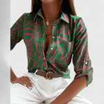Wejdź w świat bezwysiłkowej elegancji z tą drukowaną bluzką z długim rękawem, idealną na wiosenne i letnie dni w pracy lub na wakacjach.