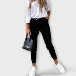 KSZTAŁTOWANA ELEGANCJA: Podnieś swój styl dzięki Melania - Spodniom Stretch, gdzie komfort spotyka się z wyrafinowaniem. Doświadcz idealnej mieszanki mody i swobody, czując się wspaniale od rana do nocy.