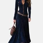MILANA | Długa Sukienka z Zamszu z Rozcięciem