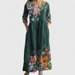 - Stylowe i eleganckie detale - Głęboki dekolt w kształcie litery V i długie, luźne rękawy dodają wyrafinowania, podczas gdy długość midi zapewnia wyrafinowany wygląd.