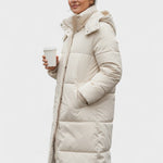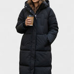 Wydłużony krój z delikatnie uformowaną sylwetką i praktycznym kapturem nadaje nowoczesny wygląd, podczas gdy miękki pikowany materiał zapewnia ciepły komfort i swobodę ruchów w każdej sytuacji. Idealny wybór dla kobiet, które szukają stylowego i uniwersalnego płaszcza, który łatwo łączy się z casualowymi i eleganckimi stylizacjami.