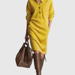 Szykowna mieszanka komfortu i wyrafinowania, midi sukienka Arianell to idealny wybór na elegancję jesieni i zimy. Z przytulną prążkowaną teksturą, zapięciem na guziki oraz długimi rękawami, ta sukienka płynnie przechodzi od dnia do nocy. Jej luźna sylwetka jest zarówno korzystna, jak i wszechstronna, a długość midi doskonale komponuje się z botkami lub obcasami.