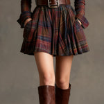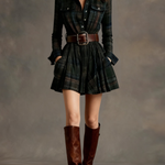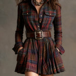 Mini sukienka w kratę vintage z zaznaczoną talią - pasek w zestawie