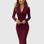 Zdefiniuj na nowo ponadczasową pewność siebie dzięki tej pięknie skrojonej sukience midi. Zaprojektowana z precyzją i wdziękiem, posiada strukturalny krój inspirowany żakietem, który podkreśla każdą sylwetkę, zachowując jednocześnie wyrafinowaną, elegancką estetykę. Miękki, ale modelujący materiał tworzy bezszwowe dopasowanie, co czyni ją idealnym wyborem na formalne wydarzenia, okazje biznesowe lub eleganckie wieczory na mieście.