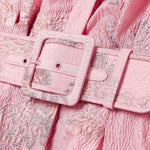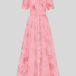 Sukienka Celestine™ zachwyca swoim delikatnym różowym odcieniem, wyrafinowanym kwiatowym wzorem oraz elegancko uformowanymi balonowymi rękawami. Luźny i korzystny krój maxi czyni ją niezbędnym wyborem na szczególne okazje, kiedy chcesz błyszczeć stylem i godnością.