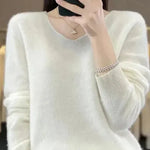 Ubierz się w beztroską elegancję dzięki naszemu kaszmirowemu swetrowi o luźnym kroju i wyraźnych liniach. Jego delikatnie pleciona powierzchnia dodaje wyrafinowanego akcentu, a klasyczny dekolt i ściągacze wprowadzają ponadczasowy urok.
