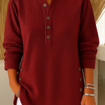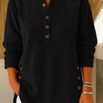 Ten lekko prążkowany sweter zachwyca swoją miękką strukturą, subtelnym designem i eleganckimi guzikami, które dodają mu charakteru. Otula ciepłem, jest przyjemny na skórze i świetnie sprawdza się w każdej casualowej stylizacji. Łatwy do łączenia z jeansami lub eleganckimi spodniami – zawsze wygląda świeżo, modnie i kobieco.