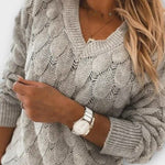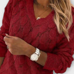 Sweter Noemier z dekoltem w serek łączy elegancję z ponadczasowym komfortem. Dzięki wygodnemu krojowi, ten sweter to idealne połączenie stylu i wygody, sprawdzające się w każdej sytuacji – od codziennego noszenia, przez biuro, aż po relaksujące weekendowe wyjazdy.
