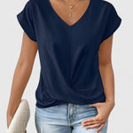 Podnieś swój styl dzięki bluzce Mahrianne z twistem z przodu i dekoltem w kształcie litery V, idealnemu połączeniu eleganckiego stylu i całodziennych wygód!