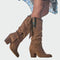 Botki damskie w stylu boho-western, inspirowane kowbojskim stylem, wykonane z zamszowego materiału z wyjątkowymi detalami. Posiadają boczne frędzle oraz ozdoby z turkusowych kamieni i metalowych elementów, które nadają im unikalny charakter. Średni obcas zapewnia komfort i elegancję, idealne do stylizacji łączących wolność z modą.